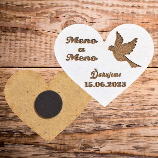 Hľadáte originálny a nezabudnuteľný spôsob, ako zvečniť váš svadobný deň? Naše drevené svadobné magnetky sú tým pravým riešením! Tieto nádherné magnetky nielen skrášlia vašu chladničku, ale budú aj trvalou pripomienkou vášho špeciálneho okamihu. Predstavte si, ako vaši blízki a priatelia s úsmevom spomínajú na vašu svadbu zakaždým, keď si na chladničke všimnú vašu osobnú magnetku. Bude to pre nich malý kúsok vášho šťastia, ktorý si môžu vychutnať každý deň.