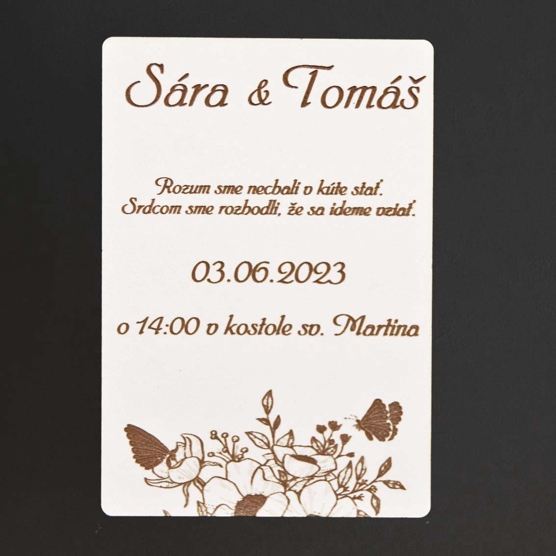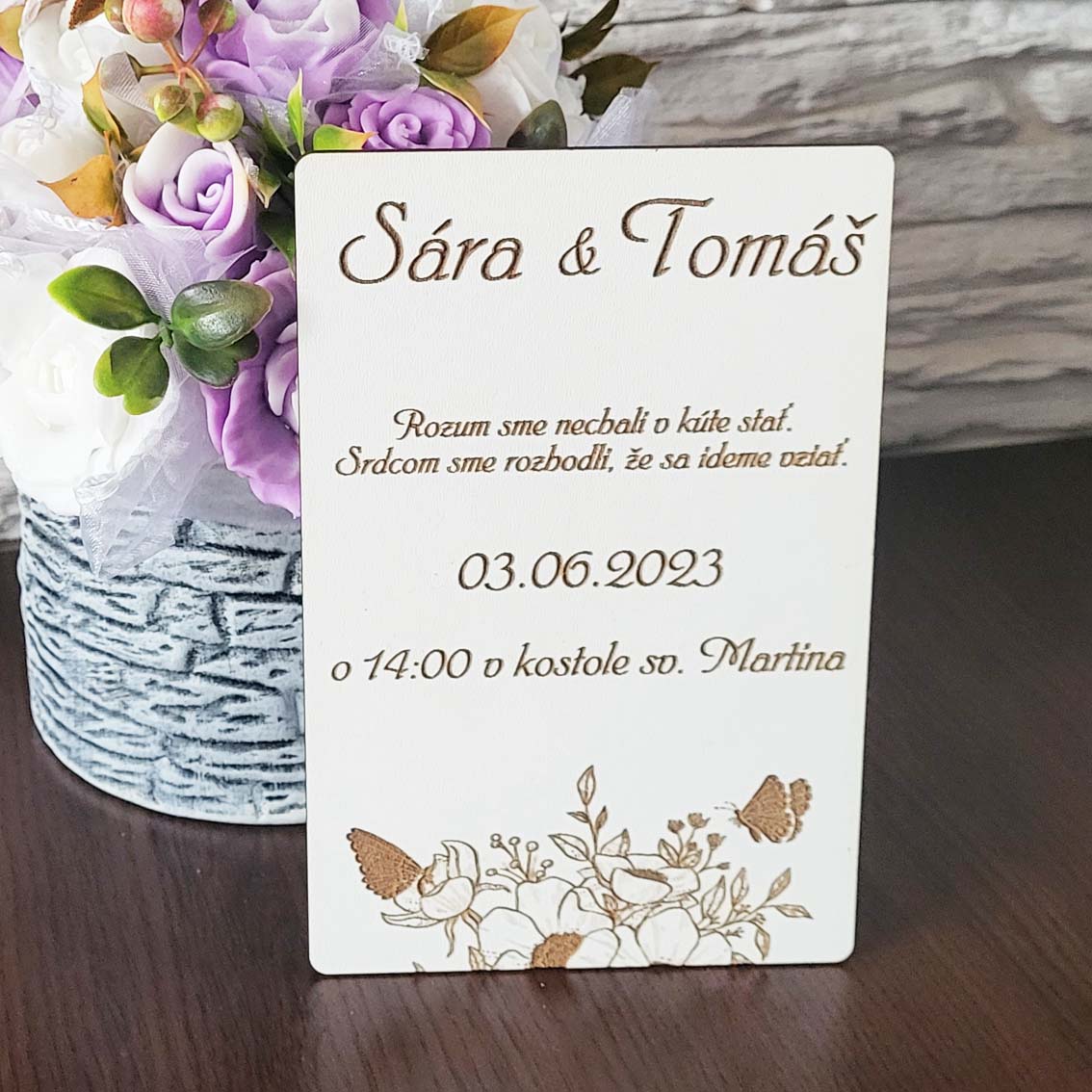 Objavte kúzlo prvej impresie so svojou unikátnou drevenou svadobnou pozvánkou! Spoľahnite sa na originálnosť a kvalitu, ktoré určite zaujmú a zvýraznia jedinečnosť vášho veľkého dňa. Kombinácia prírodných materiálov a osobného dotyku dodá vašej udalosti exkluzívny charakter.
