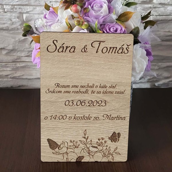Drevená svadobná pozvánka