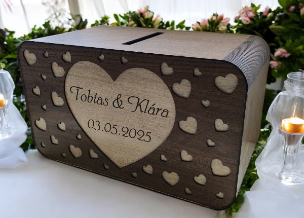 – truhlicu vám vytvoríme na mieru s vaším textom alebo menami.