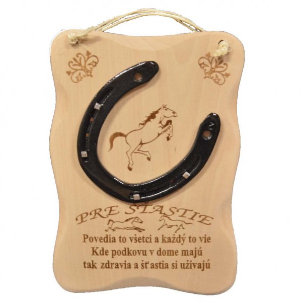 Krásna drevená dekorácia s podkovou na zavesenie.