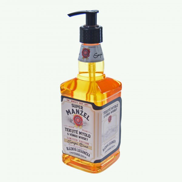 Tekuté mydlo s vôňou whisky je originálnym darčekom pre každého muža. Výrobok ma štýlový, exkluzívny štítok a bezpečný uzáver, ktorý zabraňuje náhodnému stlačeniu pumpy.