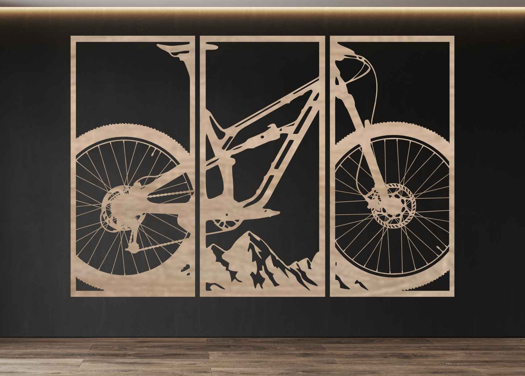 Trojdielny drevený obraz na stenu – Bicykel: Štýlová dekorácia pre váš domov