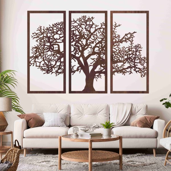 Predstavte si, že vstupujete do miestnosti, ktorá je prenikavým svetlom zaplavená pohodou a harmóniou. V centre tejto atmosféry stojí elegantný, trojdielny obraz na stene - Strom. Tento nádherný kúsok umenia, vyrezávaný z najkvalitnejšieho HDF dreva, je viac než len obraz. Je to srdce vášho domova, ktoré odráža váš vkus a lásku k prírode.