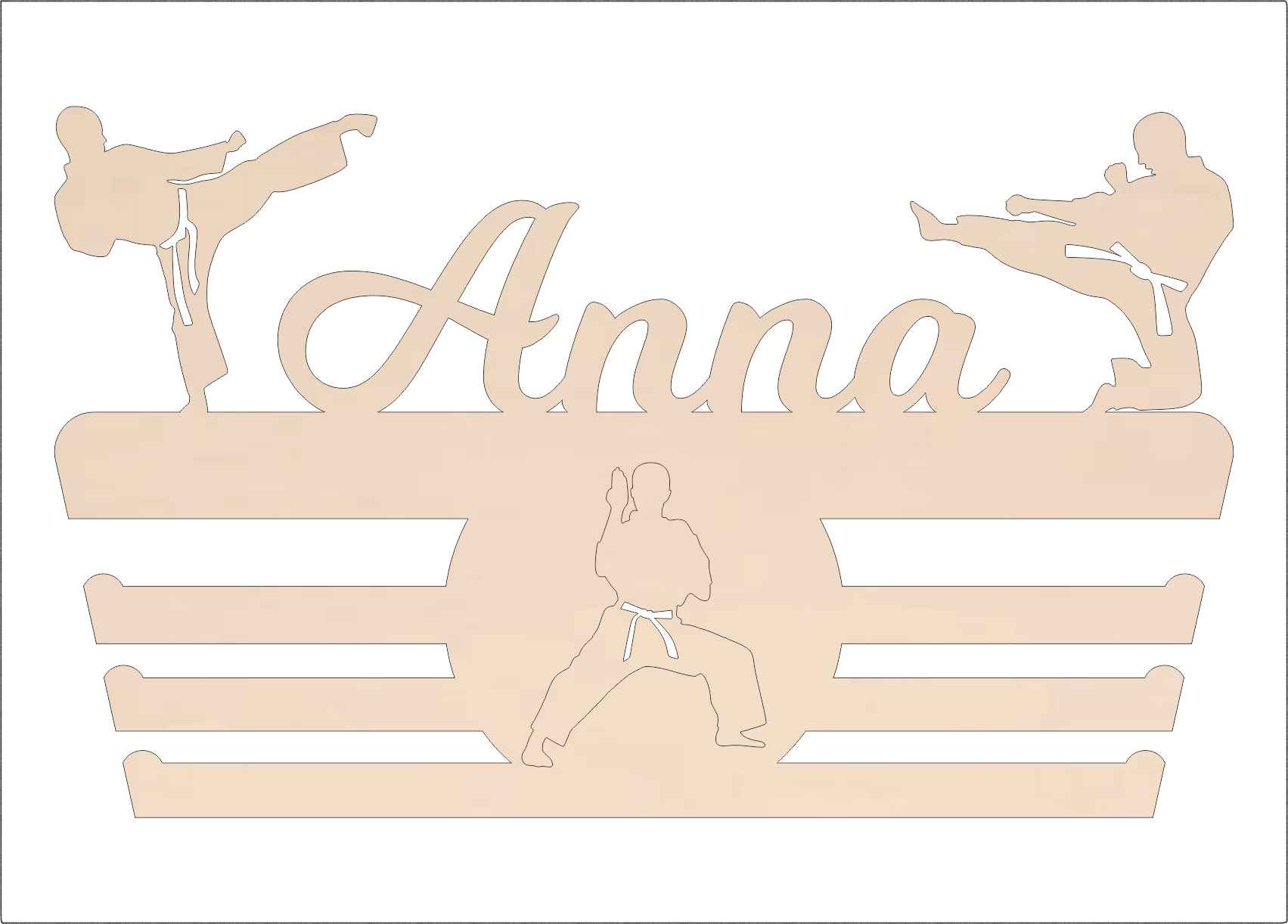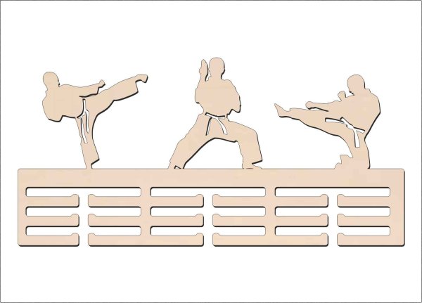Každý úspech si zaslúži byť vystavený na čestnom mieste. Tento vešiak na medaile je dokonalým riešením pre všetkých karate nadšencov, ktorí chcú svoje trofeje uchovať štýlovo a prehľadne. Vyrobený z 4 mm hrubej brezovej preglejky, poskytuje pevnosť a odolnosť, pričom jeho elegantný dizajn dodáva priestoru športový charakter.
