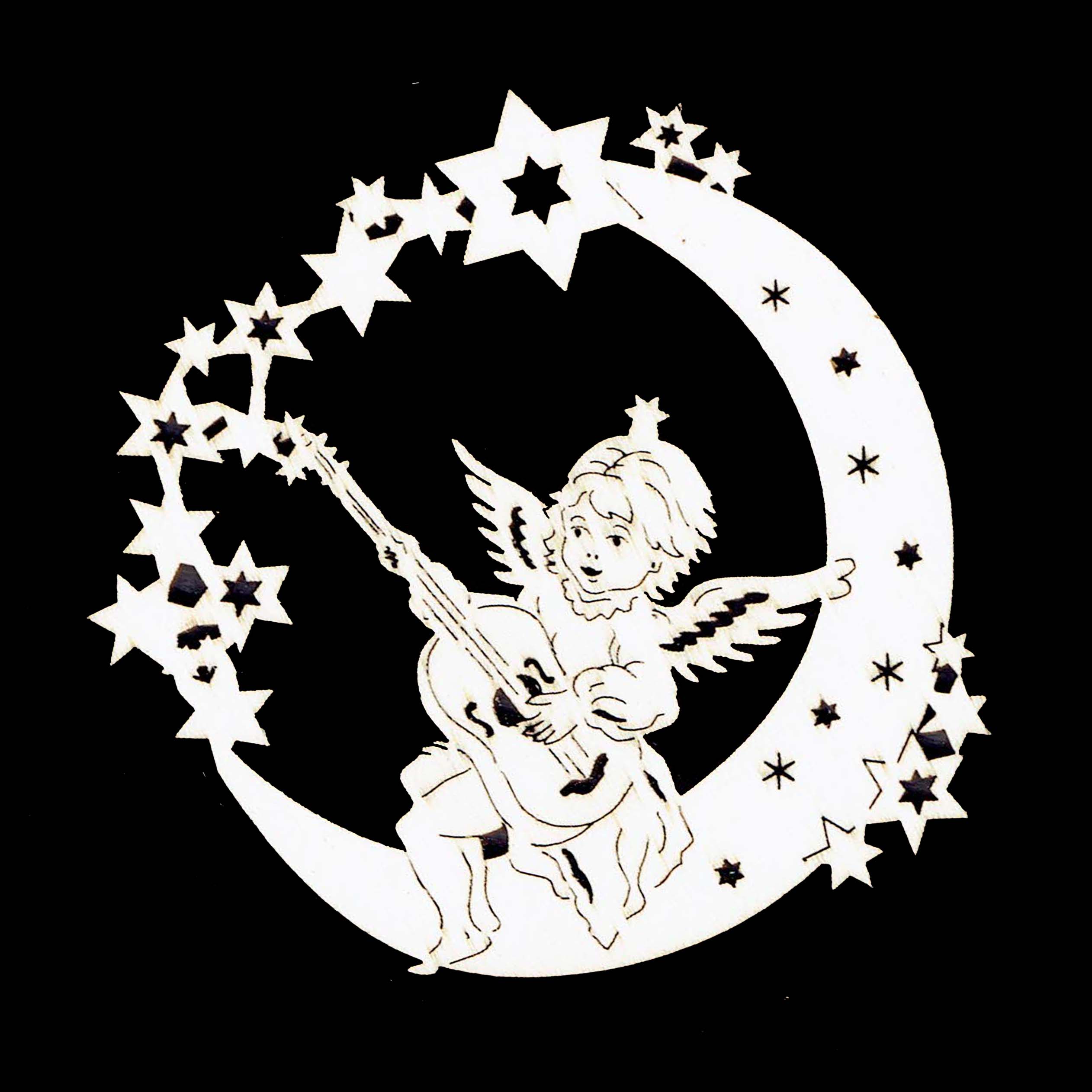 Vianočná ozdoba - Anjelik na mesiaci s gitarou 9 cm