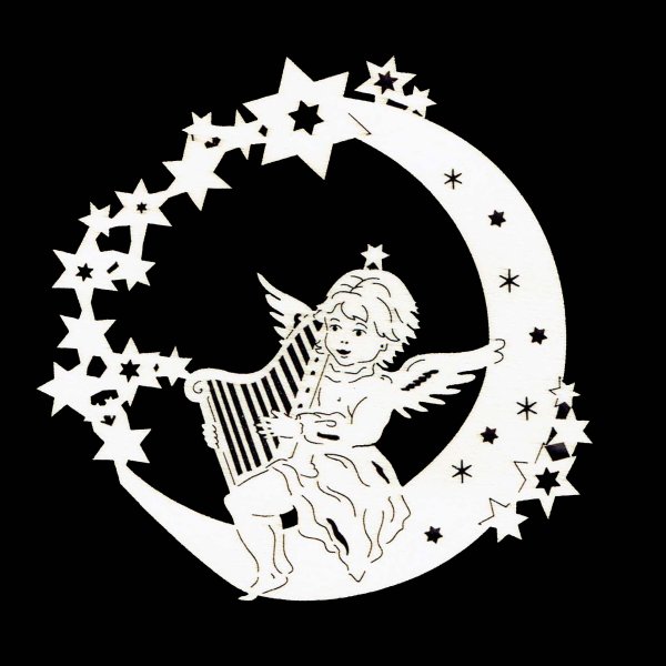 Ozvláštnite svoj vianočný stromček s touto jedinečnou a atraktívnou vianočnou ozdobou - Anjelik na Mesiaci. Vyrezávaný z dreva s láskou a precíznosťou, tento anjelik na mesiaci je viac než len ozdoba - je symbolom pokoja, radosti a vianočnej mágie.