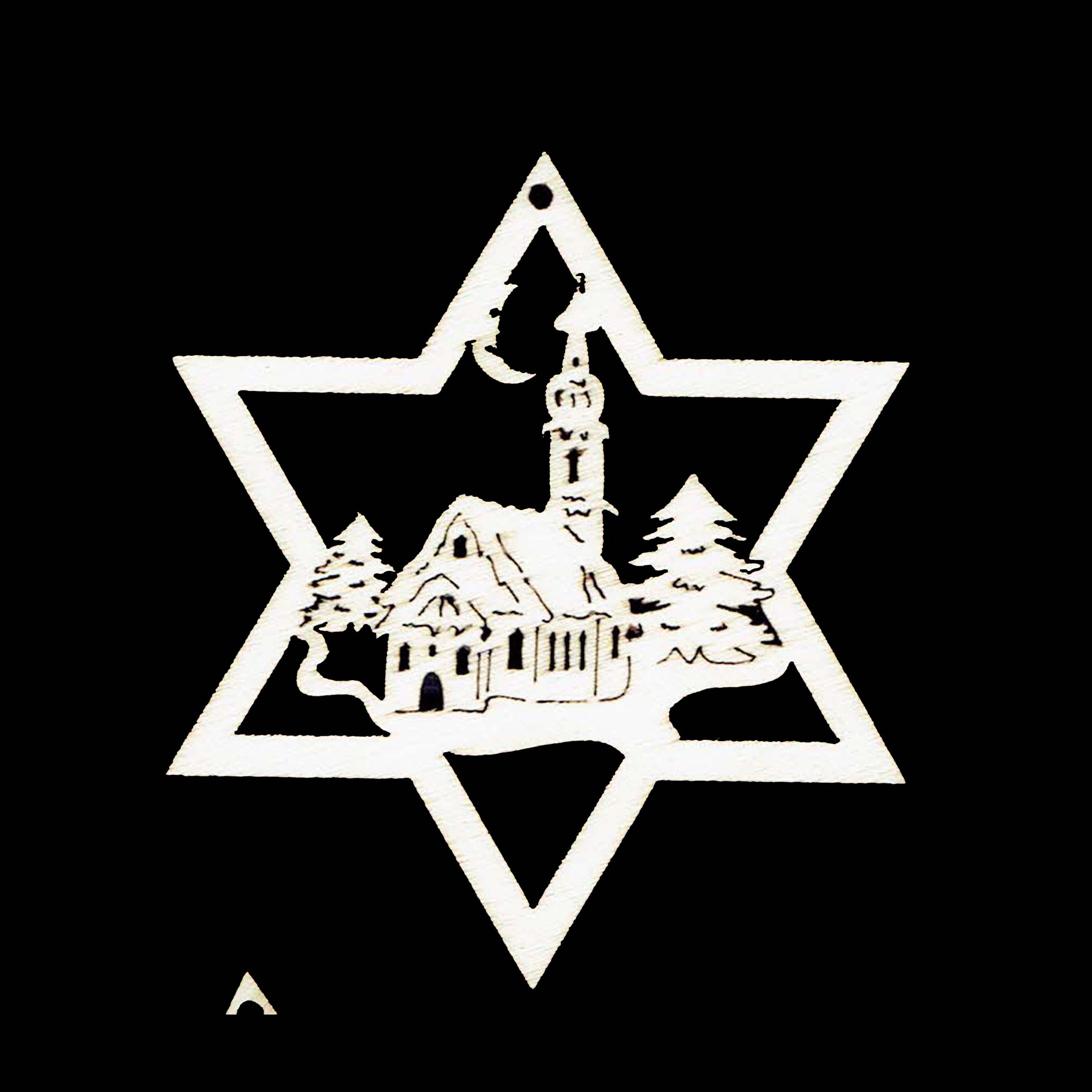 Vianočná ozdoba - Hviezdička kostol 6 cm