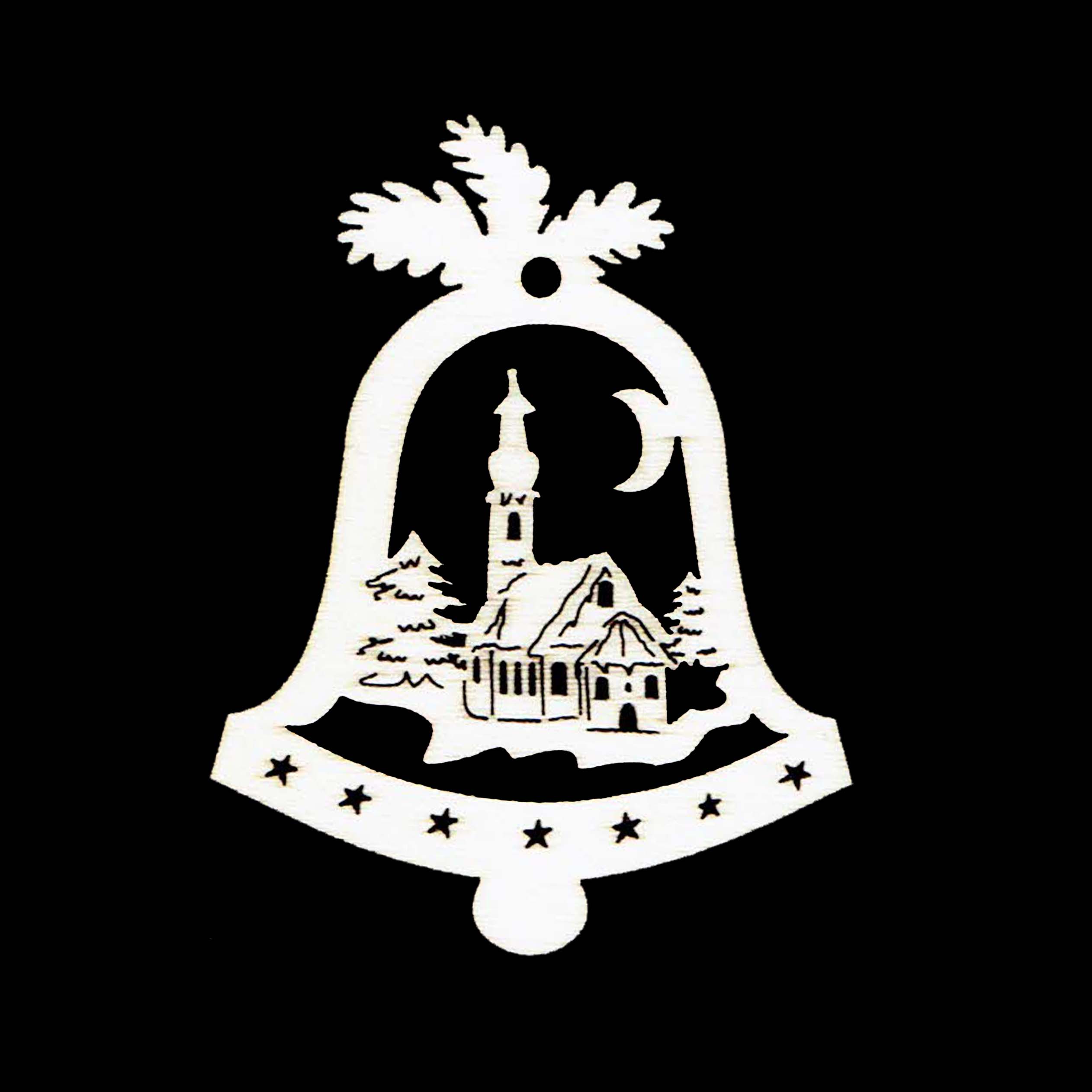 Vianočná ozdoba - Zvonček s kostolom 6 cm