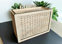 Táto vyškrtávacia drevená pokladnička je skvelým spôsobom, ako si našetriť peniaze a zároveň sledovať svoj pokrok. Na jej povrchu nájdete tabuľku s rôznymi sumami, ktoré môžete postupne vyškrtávať podľa toho, koľko ste do pokladničky vložili. Tento interaktívny systém šetrenia vás motivuje k dosiahnutiu finančného cieľa a zároveň slúži ako dekorácia do domácnosti.