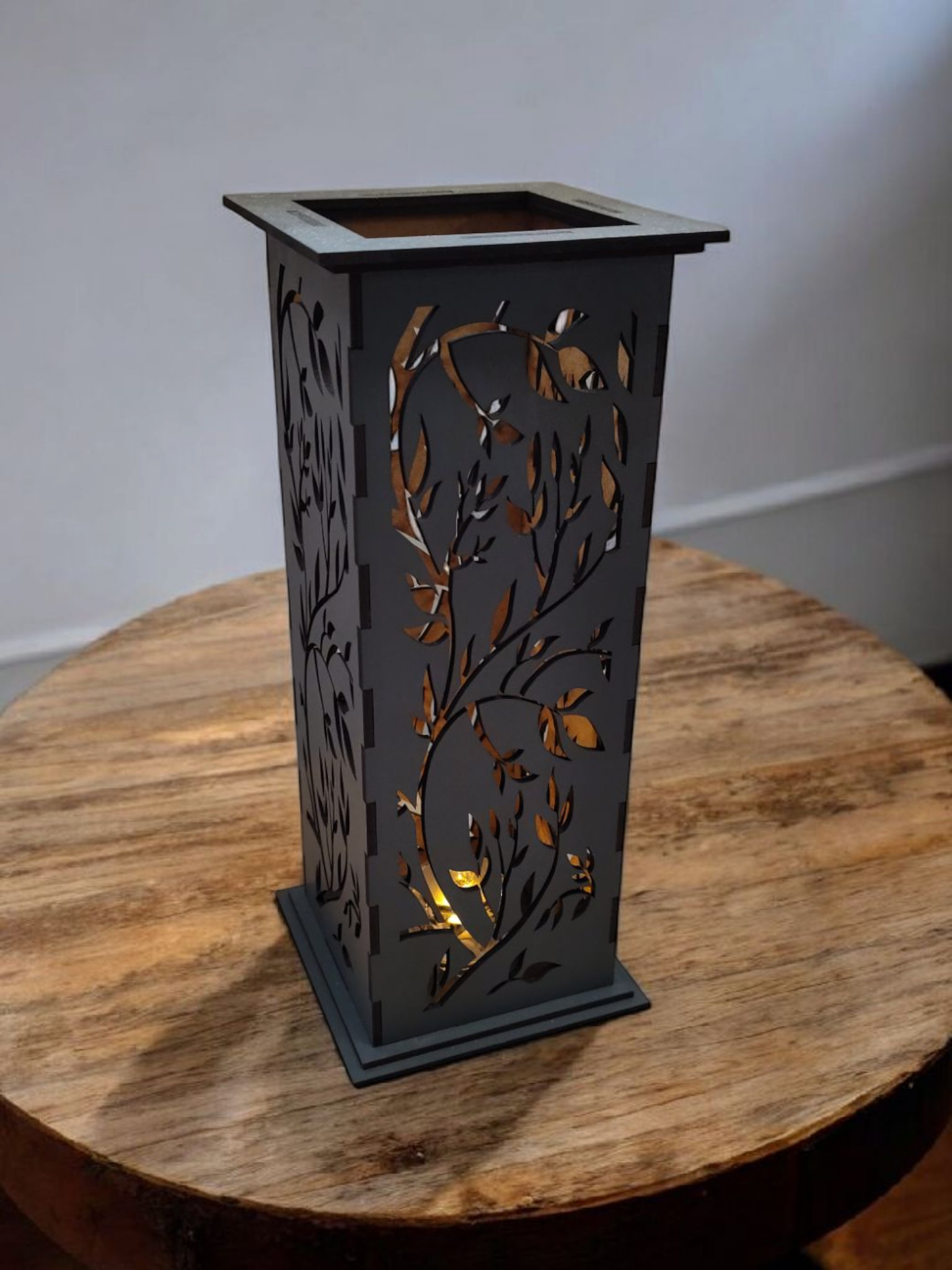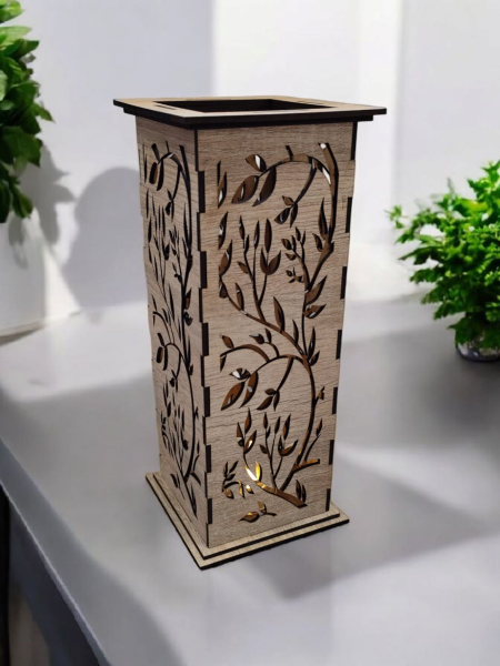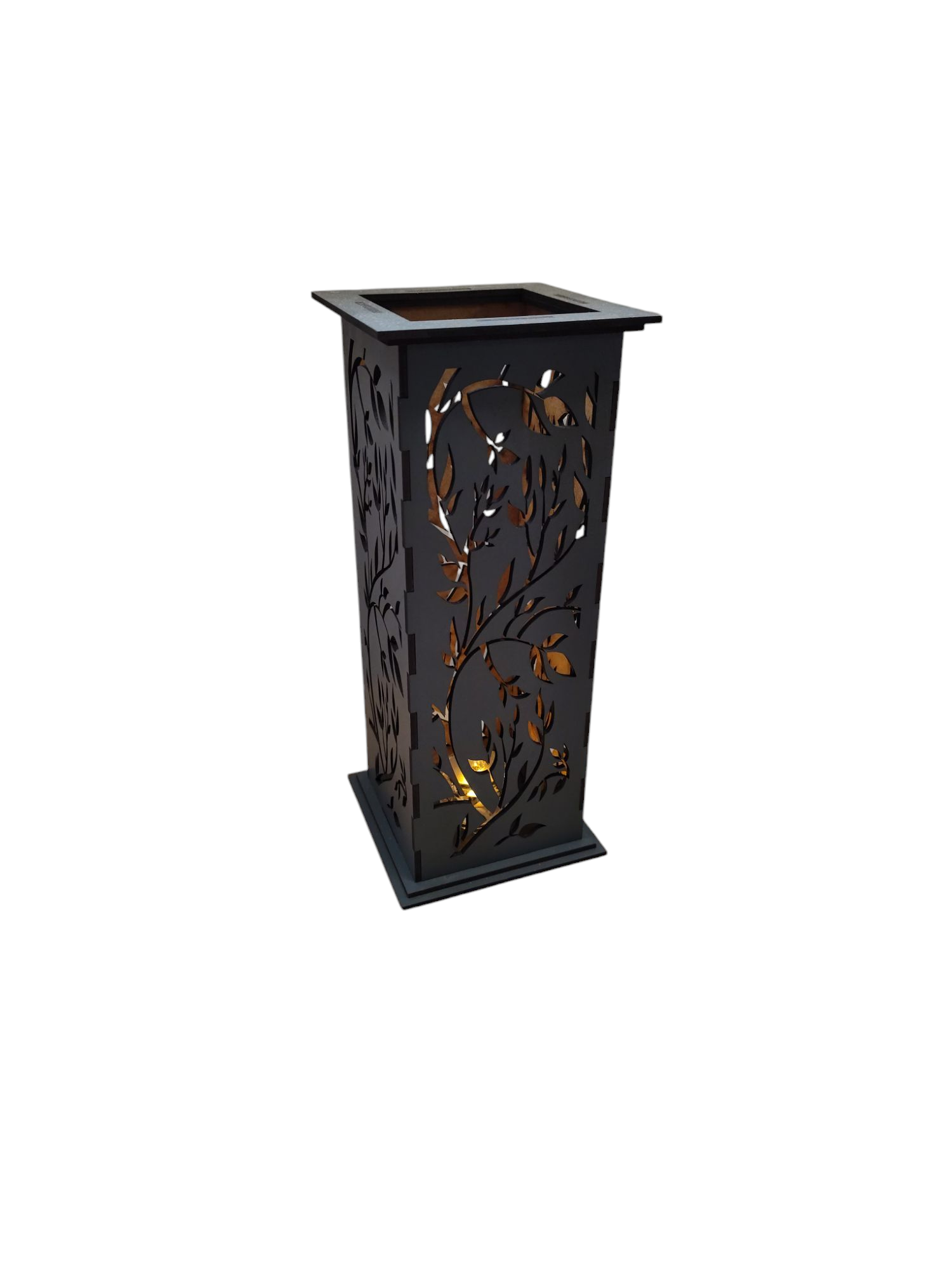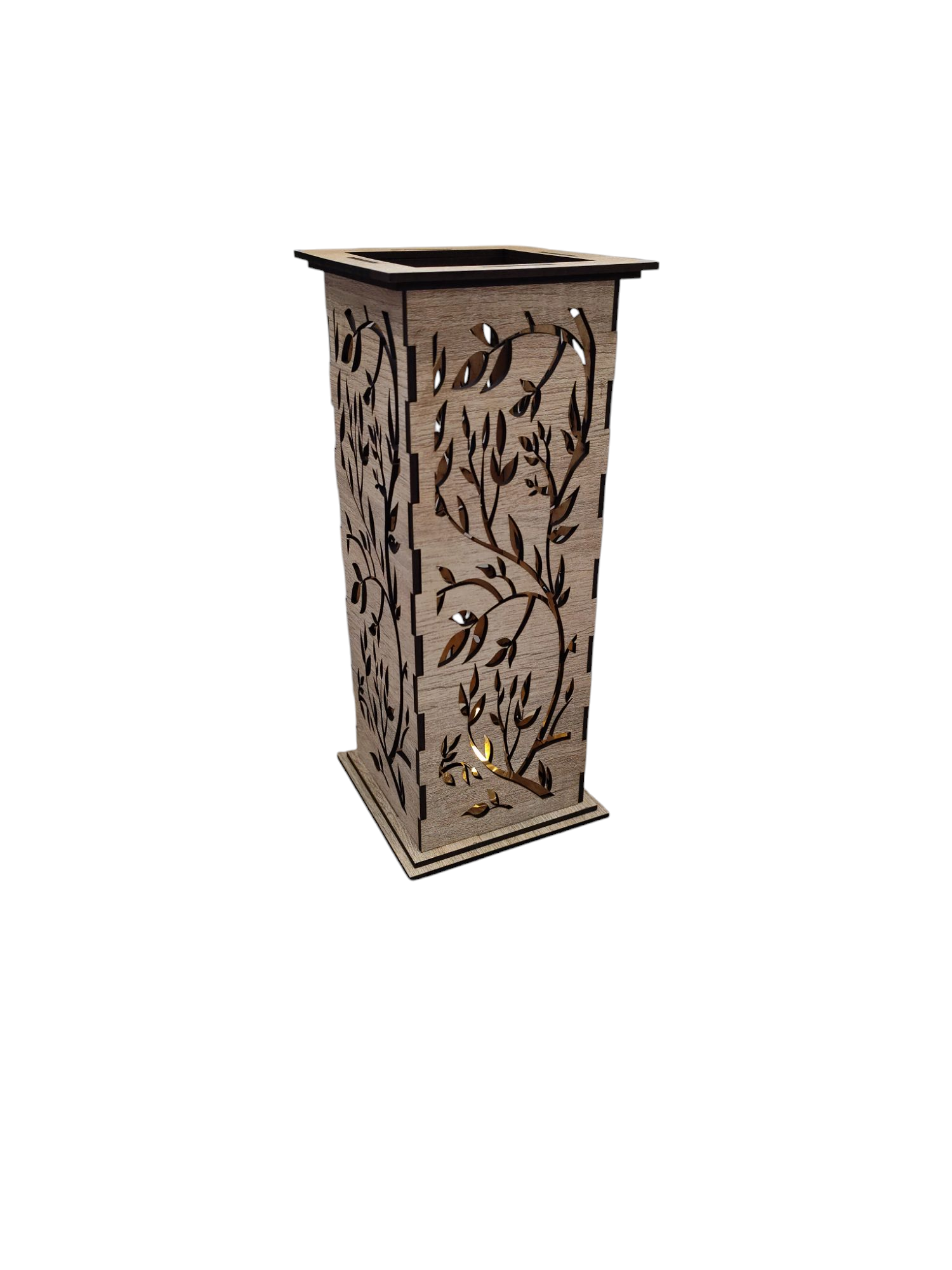 Elegantný vysoký svietnik s dekorom listov je dokonalým doplnkom do každej domácnosti. Drevený svietník je ideálny na LED sviečky a vynikne v každom interiéri.