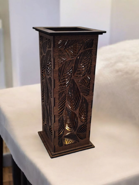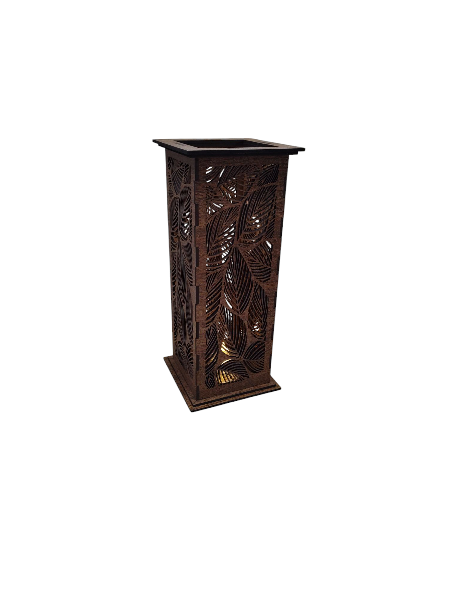 Elegantný vysoký svietnik s dekorom listov je dokonalým doplnkom do každej domácnosti. Drevený svietník je ideálny na LED sviečky a vynikne v každom interiéri.