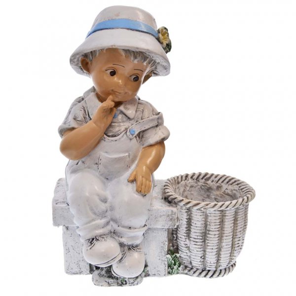 Chlapec na lavičke s košíkom je vhodný darček do každej záhrady. Rozjasnite Vašu záhradu originálnymi dekoráciami a urobte radosť sebe alebo blízkym okolo Vás. Záhradne dekorácie sú vhodné aj ako darček pre každú vekovú skupinu.