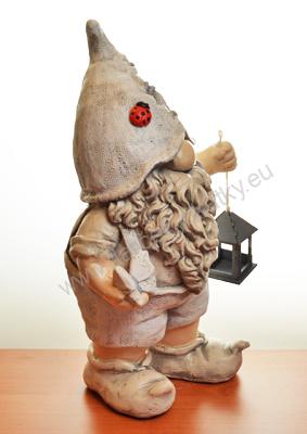 Trpaslík s lampášom vhodná ako pekná dekorácia do záhrady, alebo skalky.